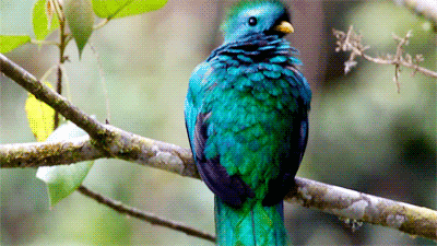 The birds, and particularly their tail feathers are suuuuuuper important to both the Aztec and Maya cultures. The extreme mucky-mucks aka rulers wore crowns adorned with quetzal feathers; in Mayan culture, quetzal tail feathers were so precious that they were used as a medium of exchange, a tradition that lives on to this day in the Guatemalan currency, which is the quetzal.